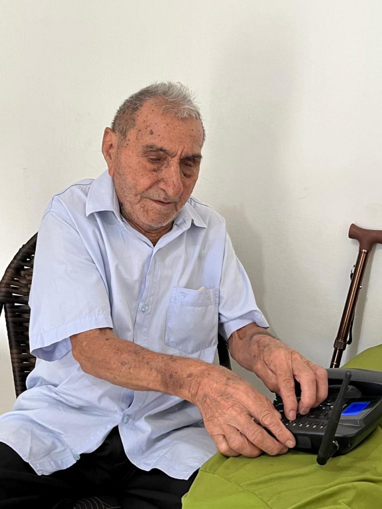 Mesmo com a perda da visão, ele consegue se comunicar com o mundo, através de seu telefone fixo.