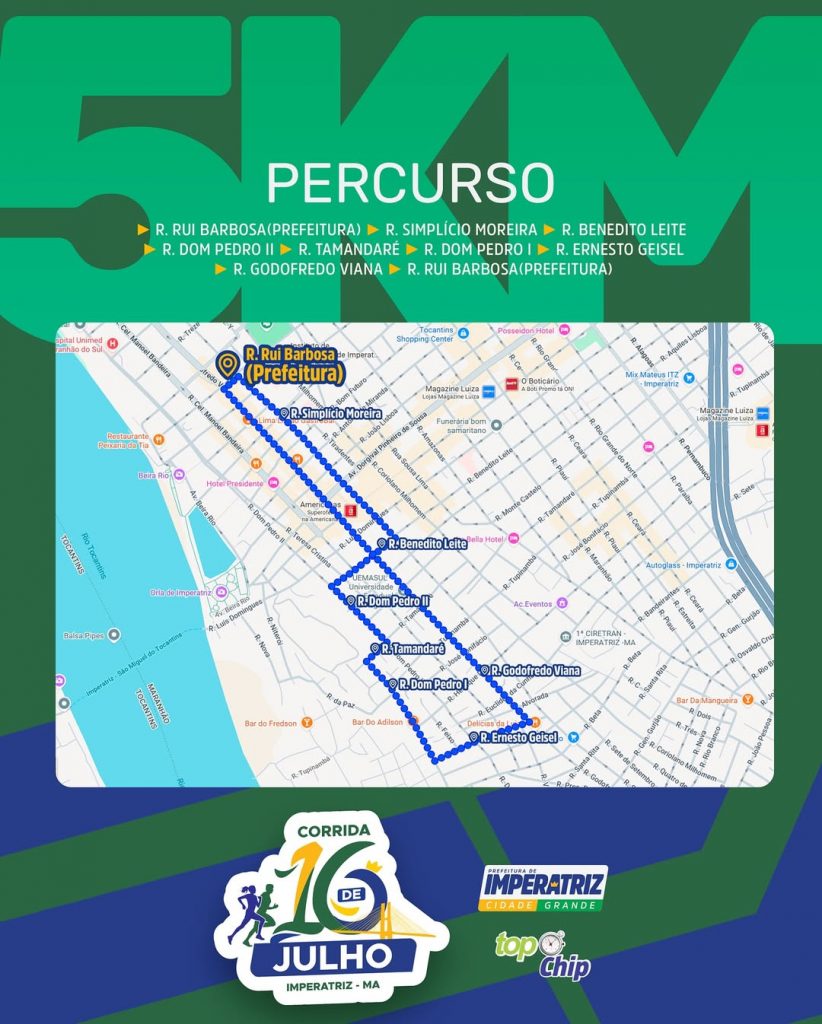 Prova de 5 km: Os atletas seguiram pelas ruas Rui Barbosa, Simplício Moreira, Benedito Leite, Dom Pedro II, Tamandaré, Dom Pedro I, Ernesto Geisel, Godofredo Viana e encerraram novamente na Rui Barbosa.