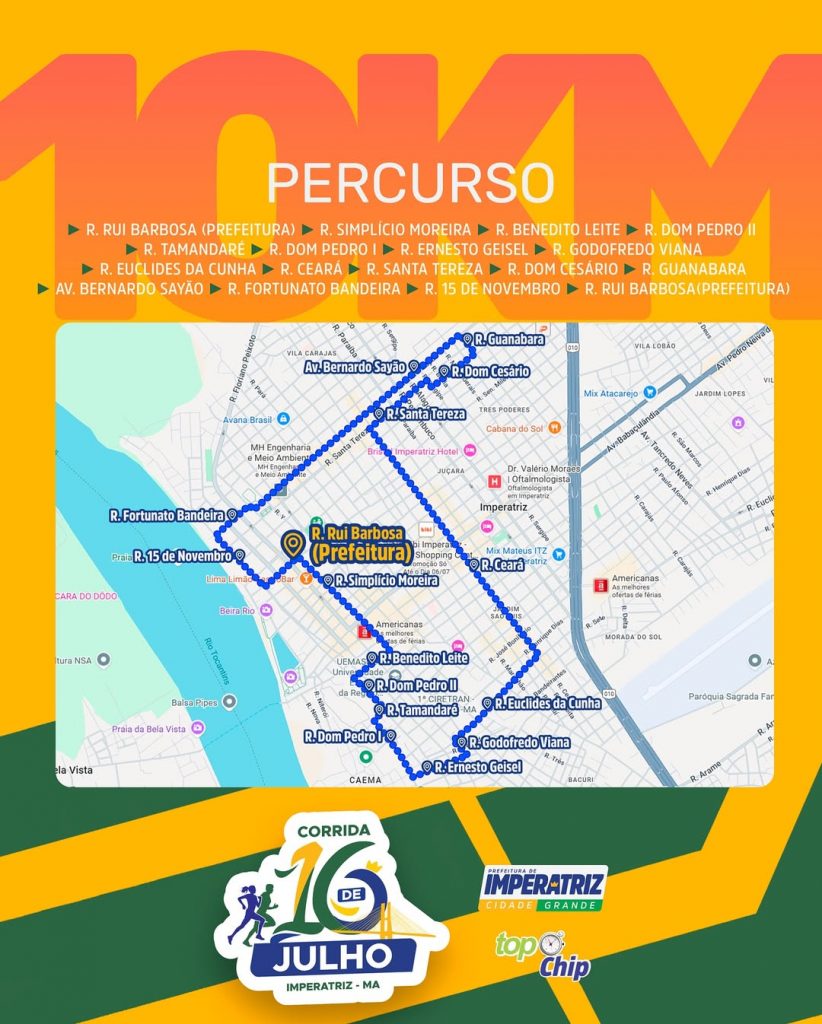 Prova de 10 km: O percurso foi pelas ruas Rui Barbosa, Simplício Moreira, Benedito Leite, Dom Pedro II, Tamandaré, Dom Pedro I, Ernesto Geisel, Godofredo Viana, Euclides da Cunha, Ceará, Santa Tereza, Dom Cesário, Guanabara, Av. Bernardo Sayão, Fortunato Bandeira, 15 de Novembro e encerraram pela Rui Barbosa.