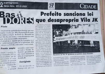 Diante da iminência de serem removidos, o grupo buscou ajuda institucional. “A gente recorreu à Secretaria de Ouvidoria, que nos levou até a Defensoria recém-criada. Conseguimos advogados para defender o povo e garantir a permanência no local”, explica Lázaro. A segunda reintegração, em junho de 2001, levou lideranças comunitárias a buscar diálogo direto com o poder público. “Fomos conversar com o Jomar. Sentamos e pedimos o apoio da prefeitura”, diz o líder, referindo-se ao então prefeito de Imperatriz, Jomar Fernandes Pereira Filho.
