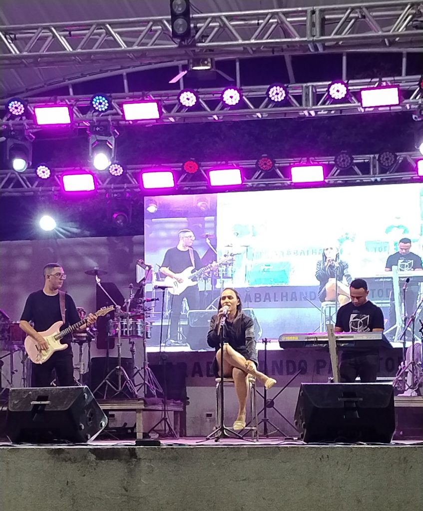 A cantora Glória Amorim foi a primeira atração da noite de encerramento do FMI, no domingo (26). Foto: Iago Sousa