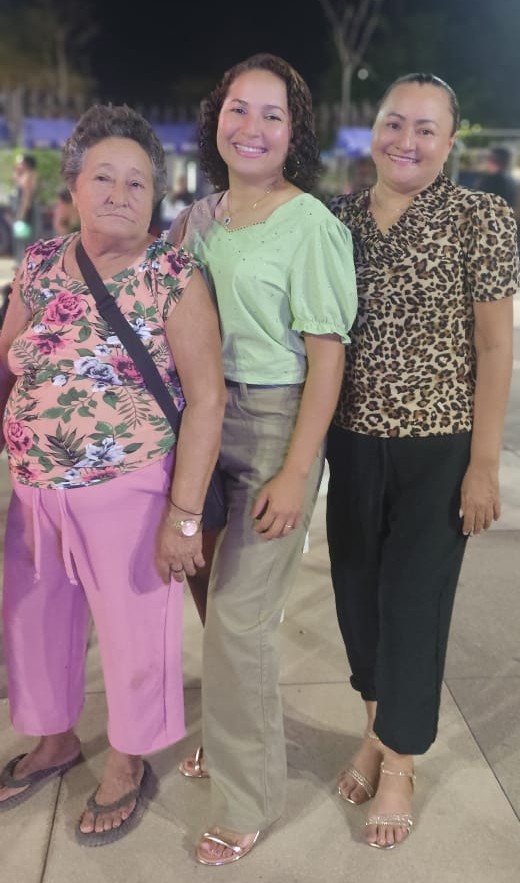 Fausta Santos, vencedora do prêmio de “Aclamação Popular”, junto de sua mãe (esquerda) e madrinha (direita), que estiveram no festival na torcida. Foto: Fausta Santos